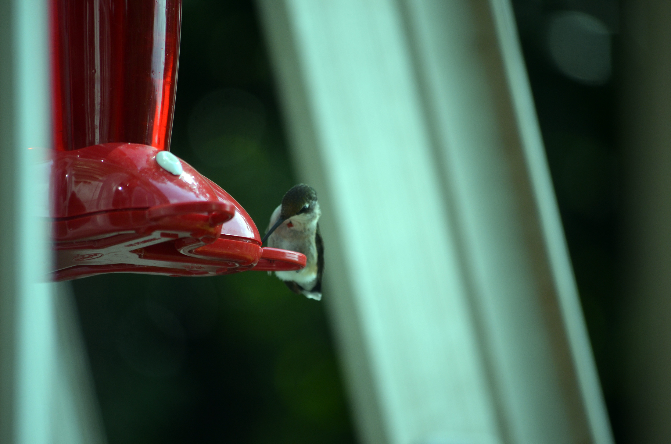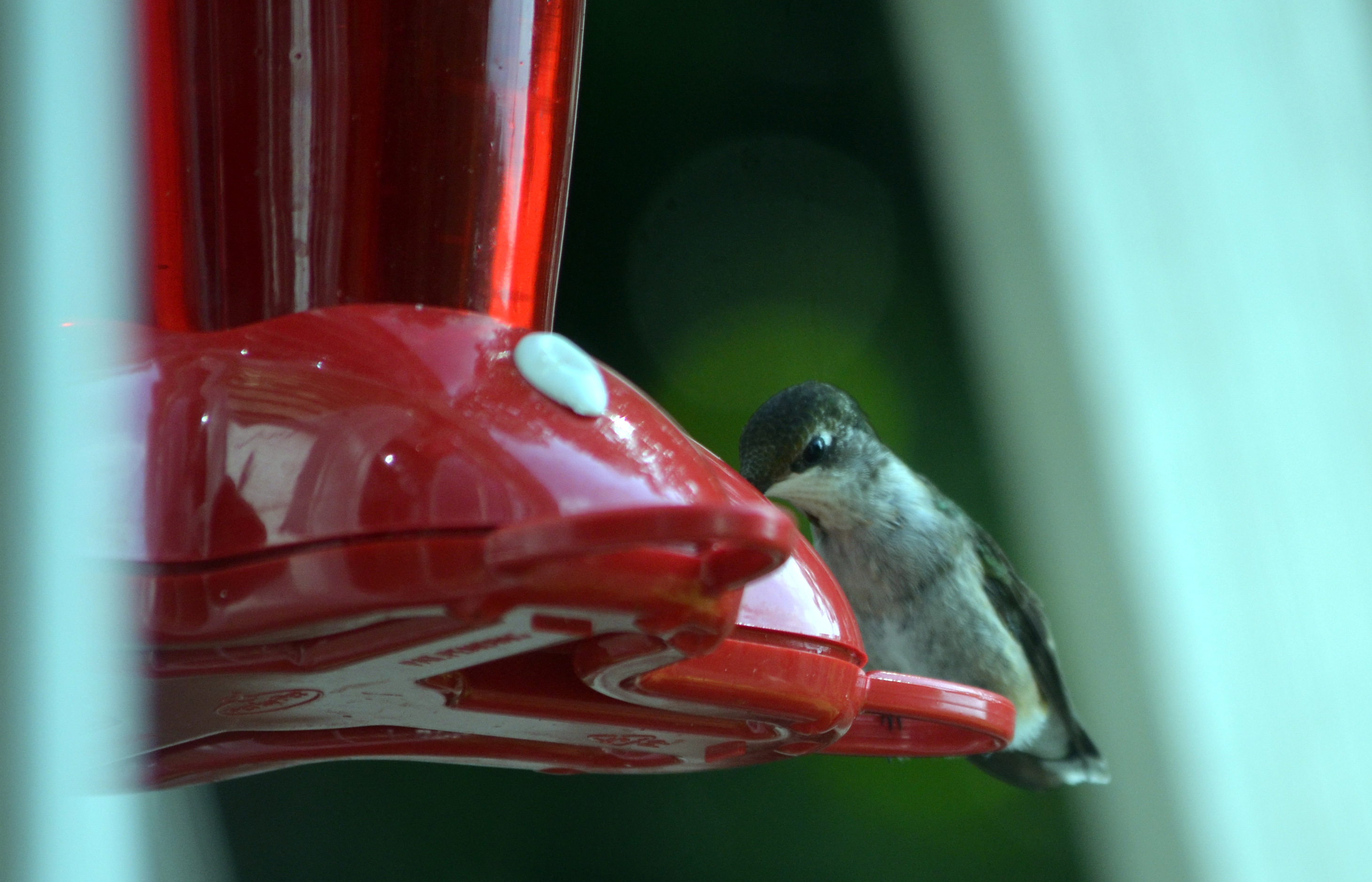 We finally hung a hummingbird feeder a week ago and to our surprise, it was discovered within an hour. As you can see from the pictures below, it happened so quickly I hadn’t even taken the ladder back down yet.