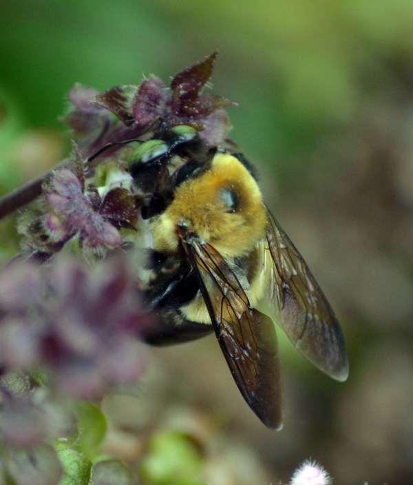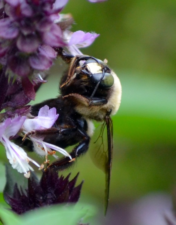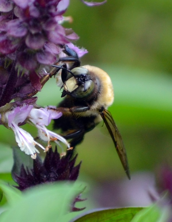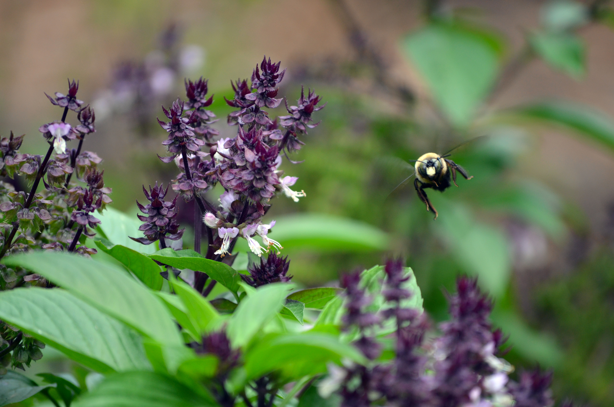 Late this afternoon I went out and the lighting was good (thin cloud cover for a nice softbox effect and the basil was covered up; there were 3 or 4 dozen bumbles on the bed along with many more honey bees. Too tempting to pass up