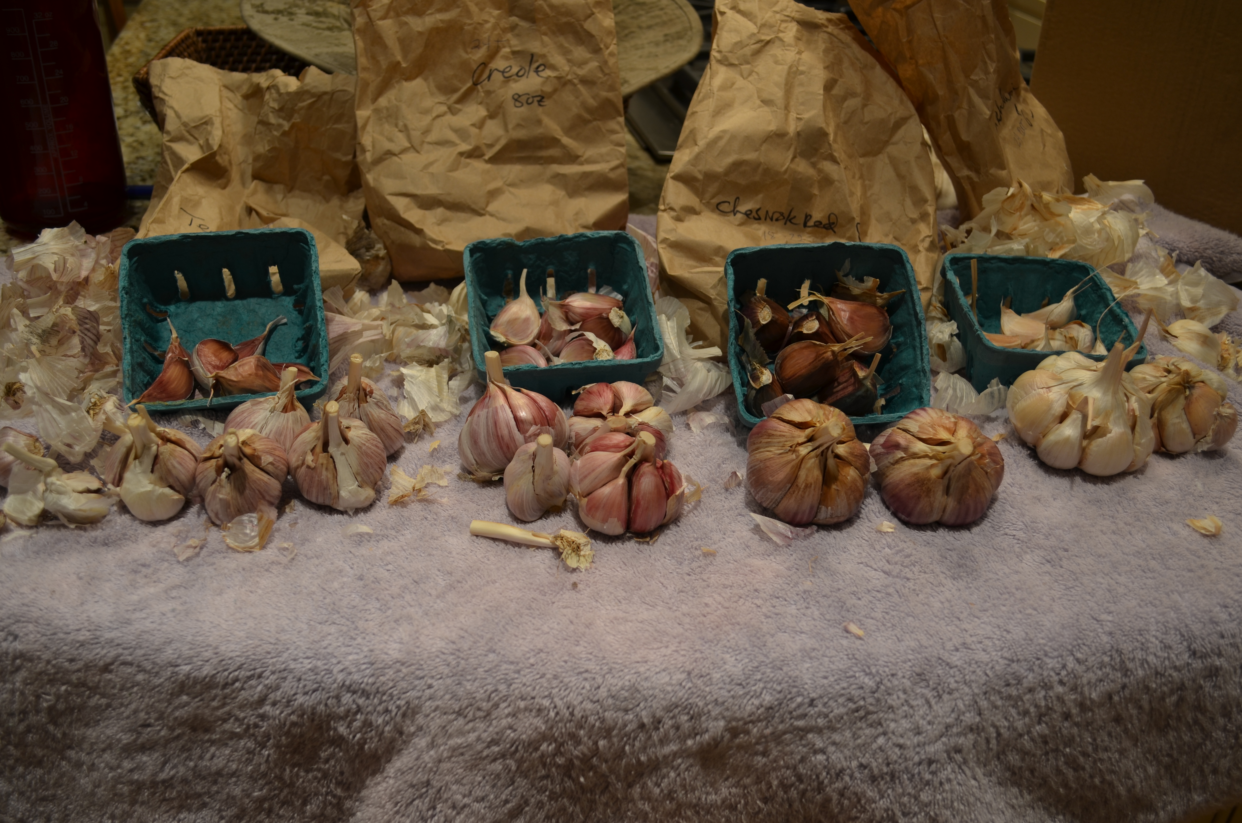 Garlic night, divide, inspect, count up the biggest ones, cull & use the small & damaged cloves.