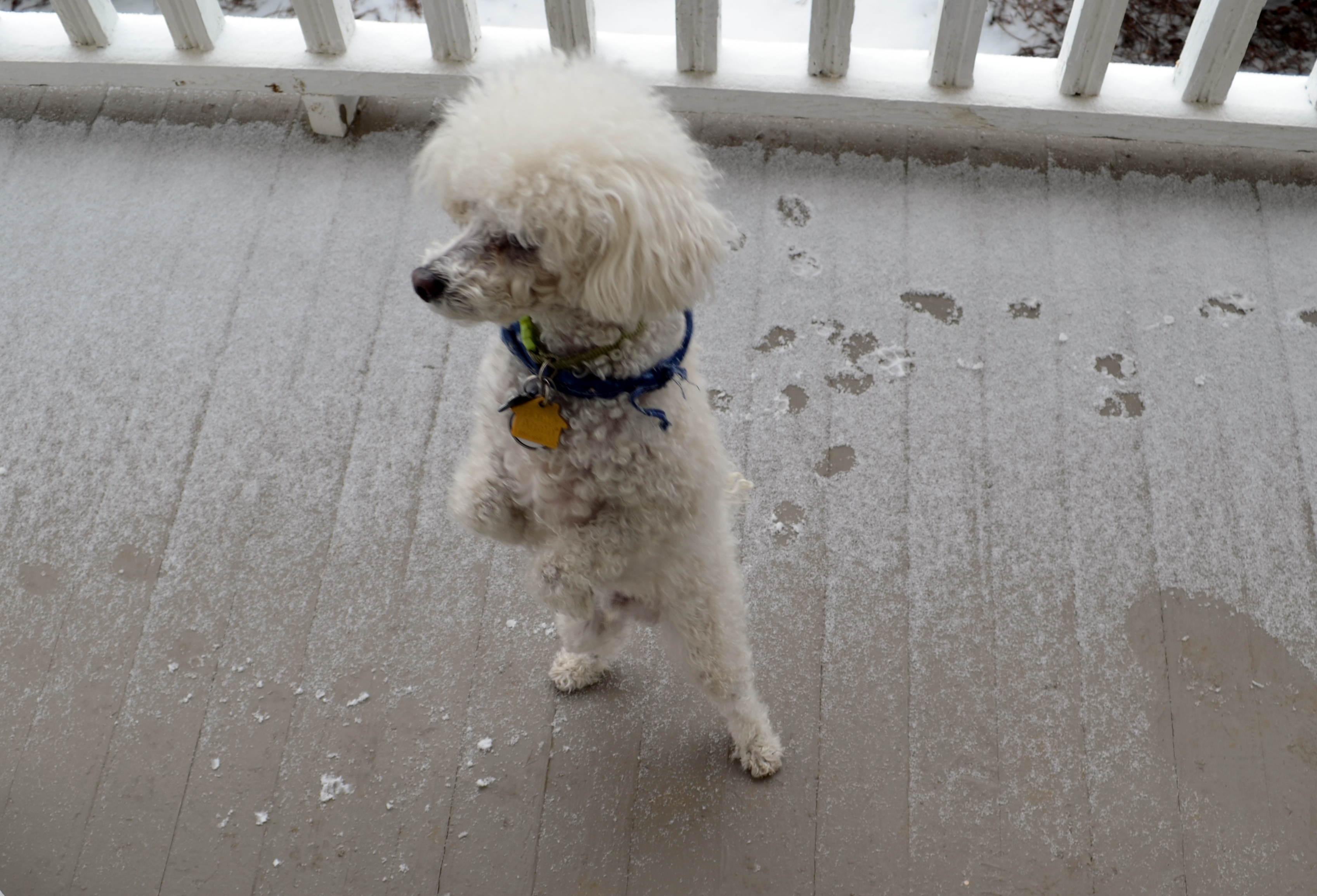 And then there was this little guy. Not a snow dog, within a minute or two he didn’t even want all four paws on the ground. πŸ™‚